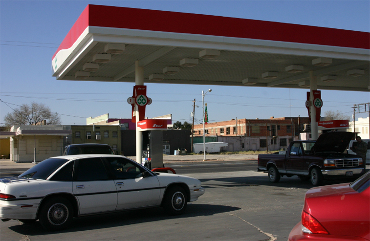 州境からペコス川に沿って52マイルでペコスの街に入った。ここで給油、10時半になっていたが、テキサス州のここはセントラルタイムで既に11時半。