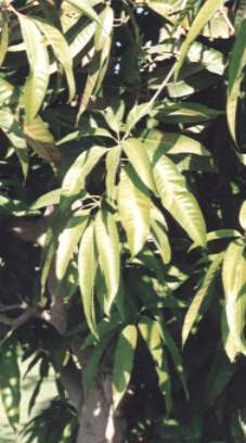 葉は、互生、全縁、革質、皮針形、長さ約40cm。