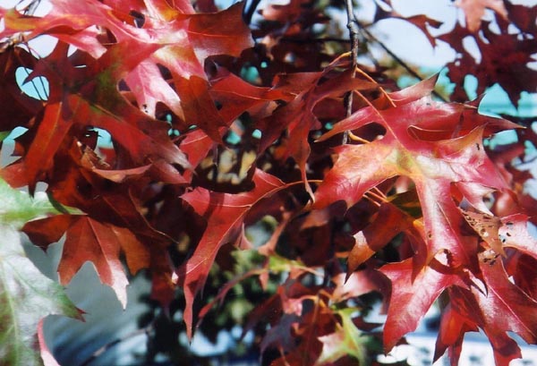 むしろ、Red oak (Quercus rubra) や Scarlet oak (Quercus coccinea)が、 秋に見事な紅葉になるようです。
