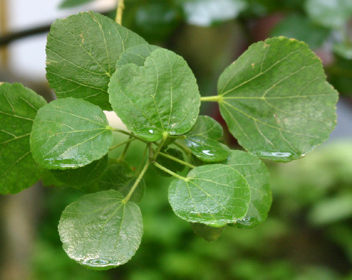落葉樹で樹高3−6mになる。樹皮は暗茶色で成木はコルク質。 葉は丸い心形、小さい星状毛がある。 花は、葉より先に出て、花弁は果が落ちるまで残り、果の翼の役をする。 花期は、早春。 東アフリカ原産。