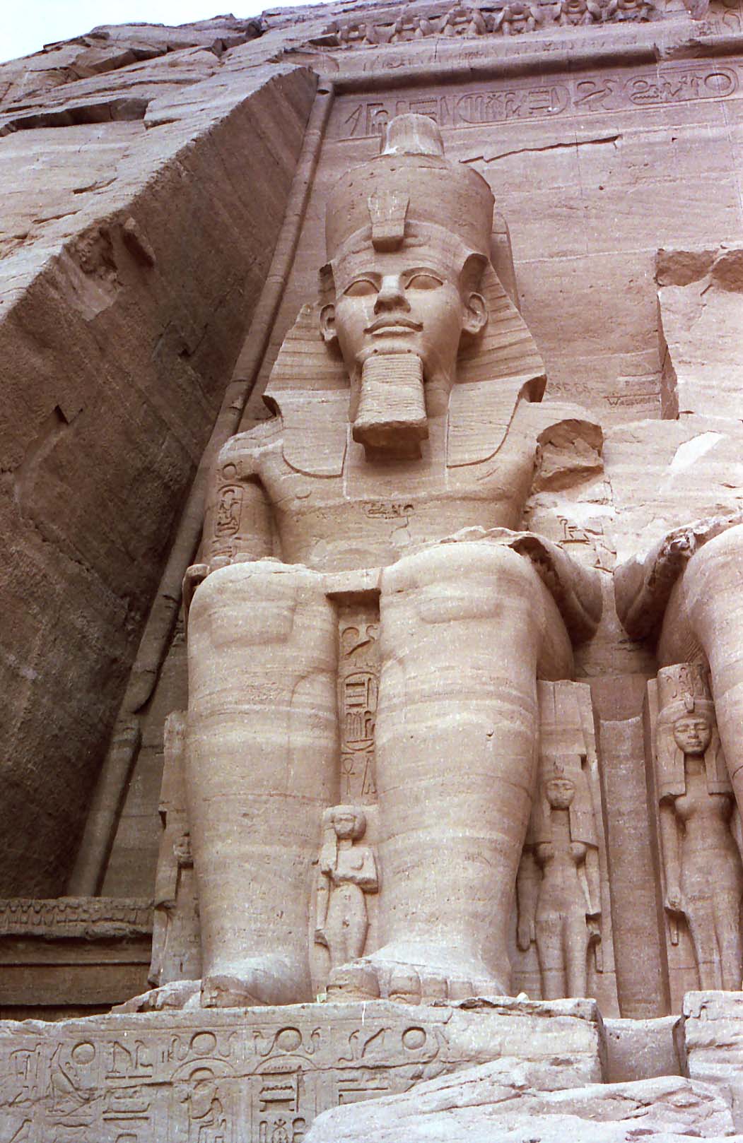 神殿最奥の4像 (左からプタハ神、アメン・ラー神、ラムセスU世、ハラクティ神)