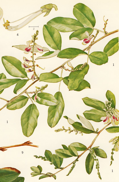 Leaves are alternate, tifoliolate. Leaflets are elliptic to oblong, entire on the margin.