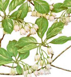 Leaves are alternate, obovate, acute at the apex, serrulate with aristate teeth. In autumn the leaves turn brilliant red.